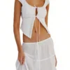 Womens Tank Tops Solid Color Sleeveless Sling Design Front Button Tie Cardigan Tank Tops