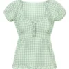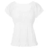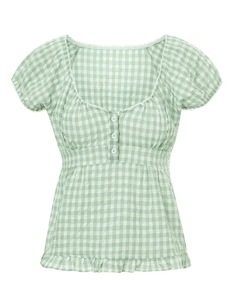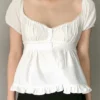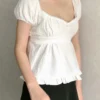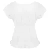 Women’s Summer Short-sleeved T-shirt Solid Color Low-necked Pleated Hem Casual Tops