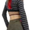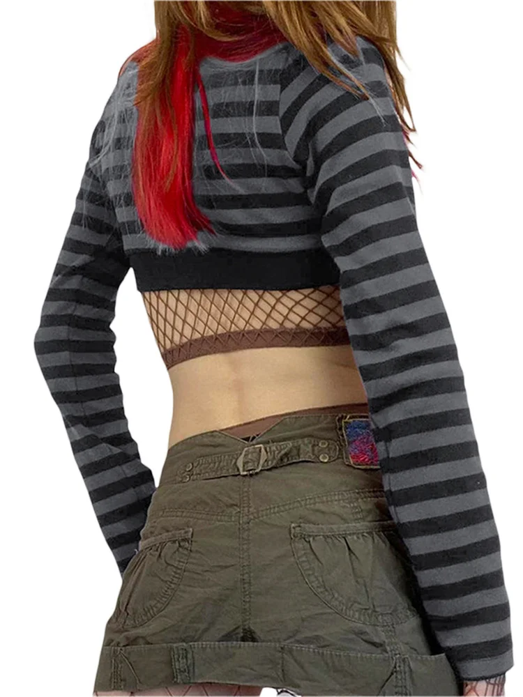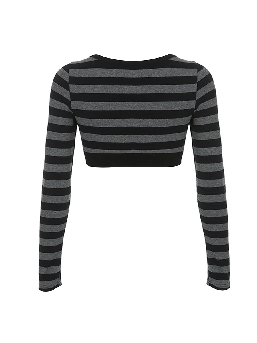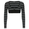 Womens Crop Tops, U-Neck Button Up Long Sleeve Striped Shrug Slim Fit Vintage T Shirt